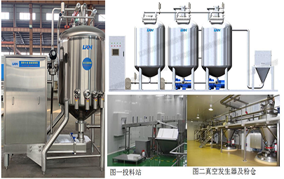 優(yōu)康恩自動化料系統(tǒng)用于對粉料和其它配料進行乳化和水化的混料系統(tǒng)設(shè)備。其中真空混料機可在密閉真空容器下進行高速剪切乳化混合綜合產(chǎn)品、各種粉末和液體等,每小時化粉量可達到3T-5T。優(yōu)康恩自動化料系統(tǒng)可利用真空作用將配料輸送到化料設(shè)備中,省去了操作工承擔(dān)這項繁重工作的需要。